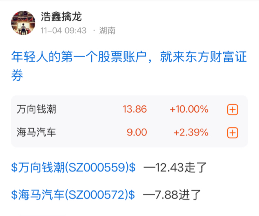 温馨提示: 1.根据《证券法》规定,禁止编造、传播虚假信息或者误导性信息,扰乱证券市场;2.用户在本社区发表的所有资料、言论等仅代表个人观点,与本网站立场无关,不对您构成任何投资建议。用户应基于自己的独立判断,自行决定证券投资并承担相应风险。《东方财富社区管理规定》