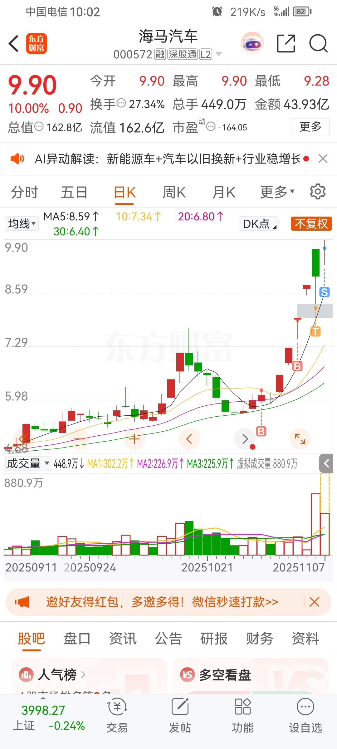 $海马汽车(SZ000572)$ 走了走了,昨天早晨除了,中间接回来。分不清今天是不是真出货,落袋为安吧。