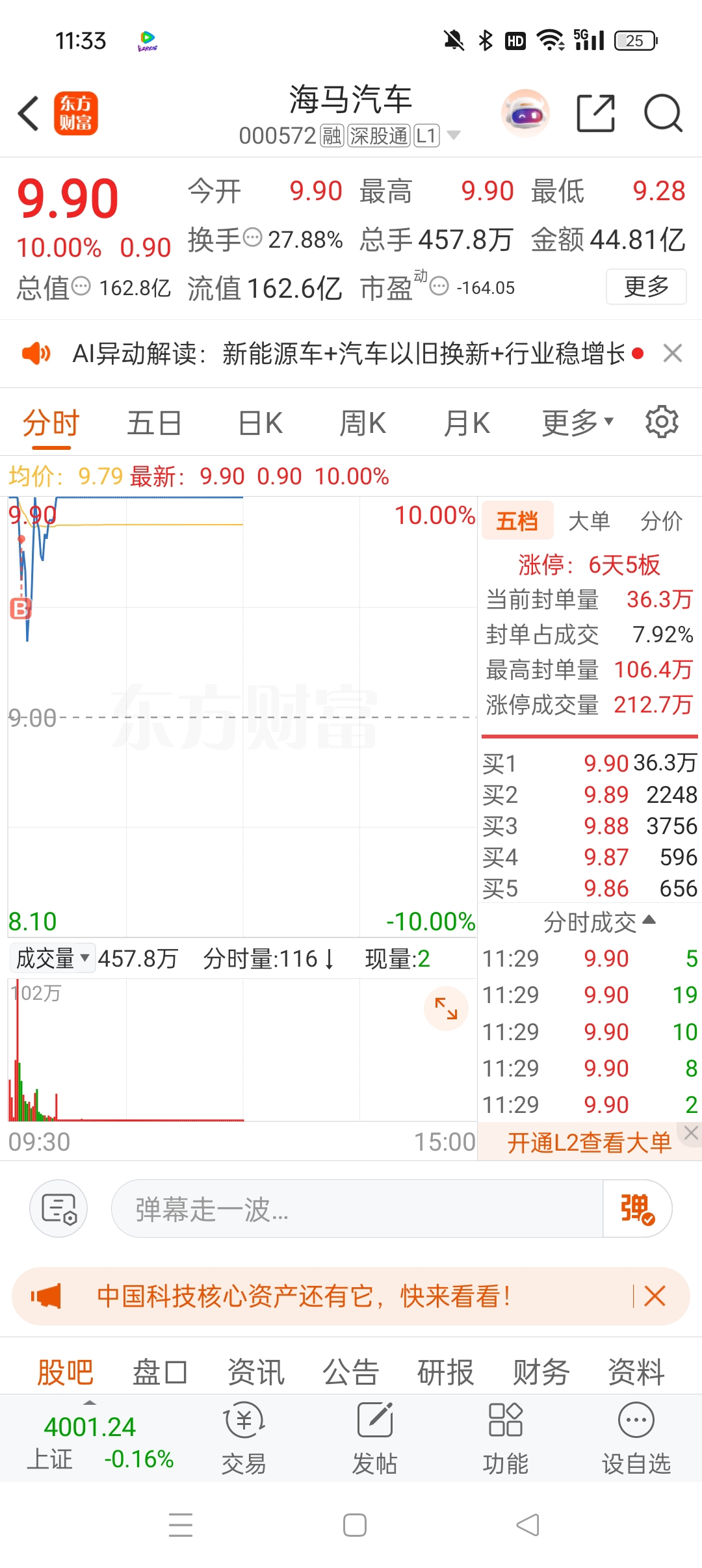 $海马汽车(SZ000572)$ 为支持短线投机贡献一份力量