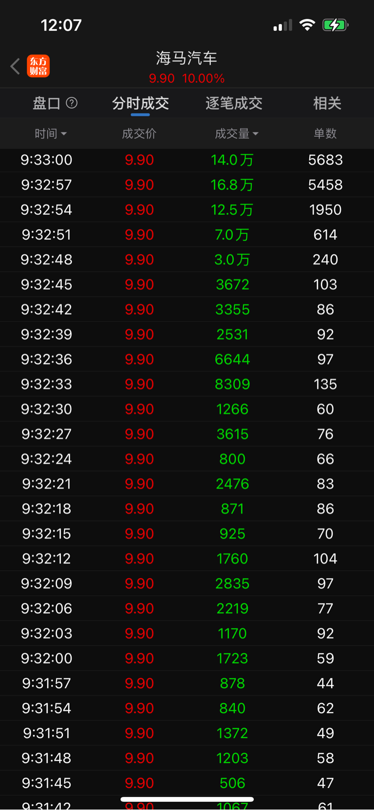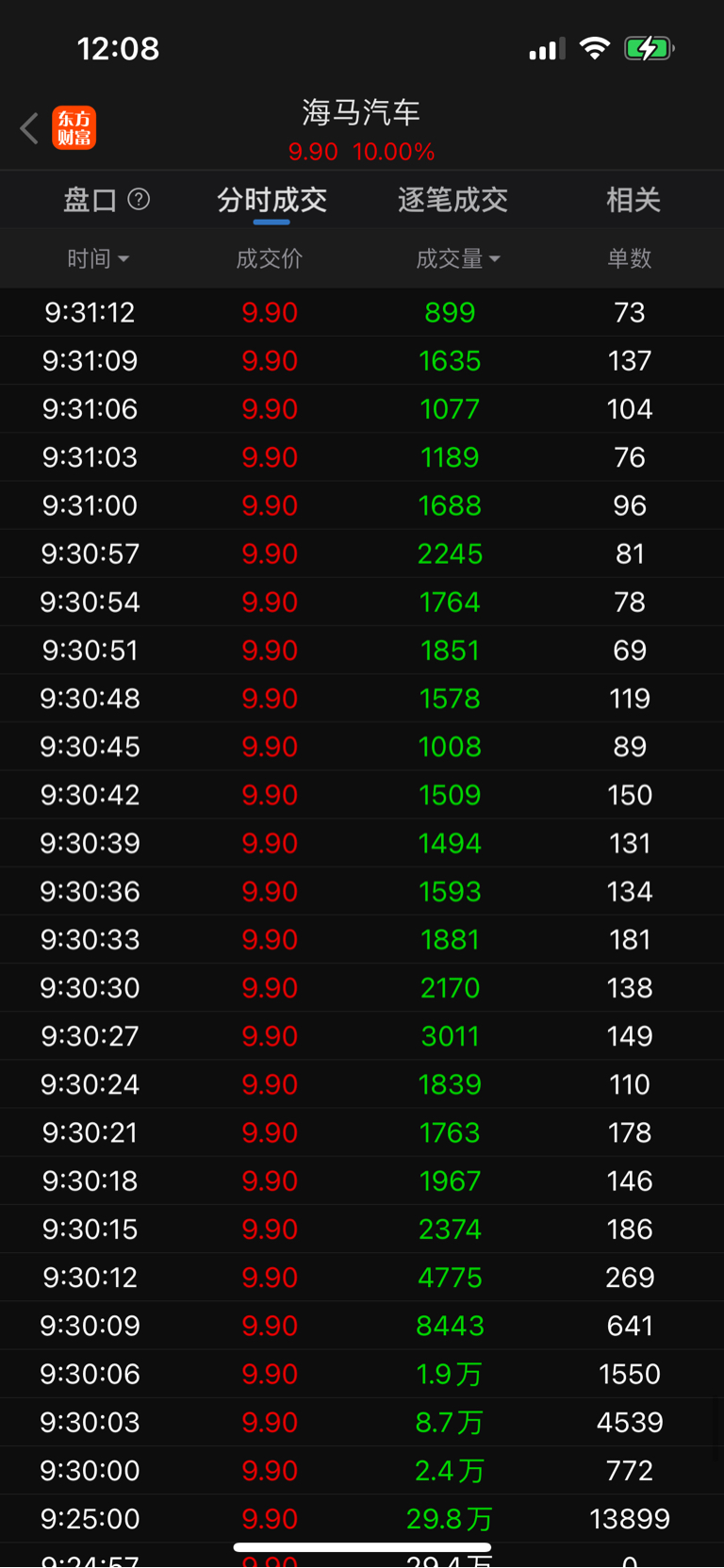 $海马汽车(SZ000572)$ 周五从9:25-9:33正好成交了103万手,可以说106万手封单全部被成交,而不是洗盘手法常见的撤单、诱导散户卖出,是实打实的悄悄的砸盘百万手成交,那么问题来了:天大的利好,人人都知道,散户疯狂买入的时候,谁在疯狂卖出?这103万手是谁的?是散户的吗?散户有多少万手也是一盘散沙形不成合力,没有统一行动能力,这103万手百分百是庄家的!