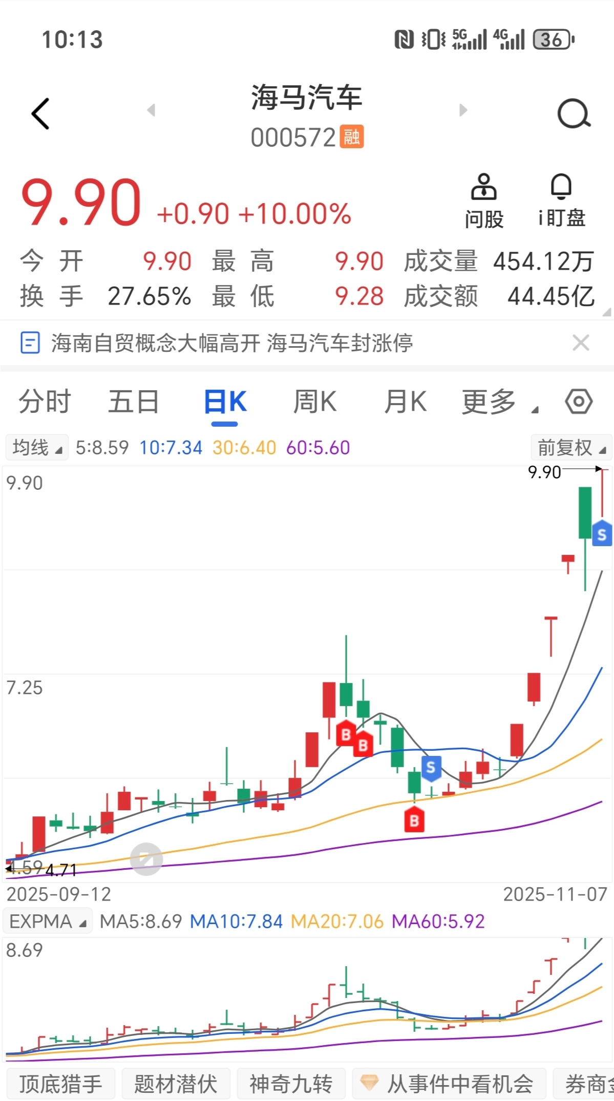 $海马汽车(SZ000572)$ 提前潜伏,并忍受住了10多个点的波动,终于等到起飞,盈利40%,周五减仓一些,海马继续冲冲冲