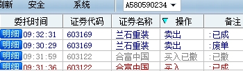603122合富中国水下加仓涨停附近T出;原预期目标20元附近清仓603169兰