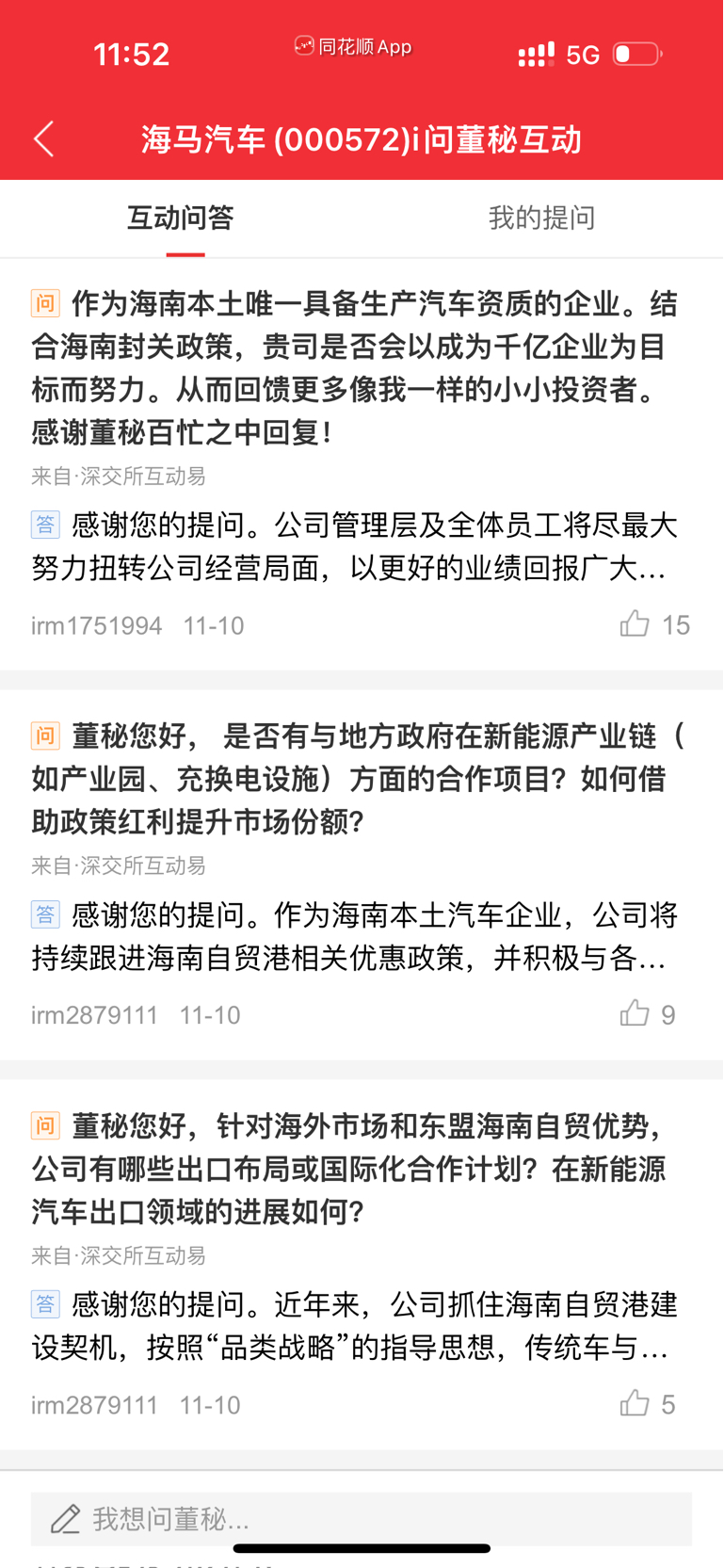 $海马汽车(SZ000572)$ 董秘开始努力了
