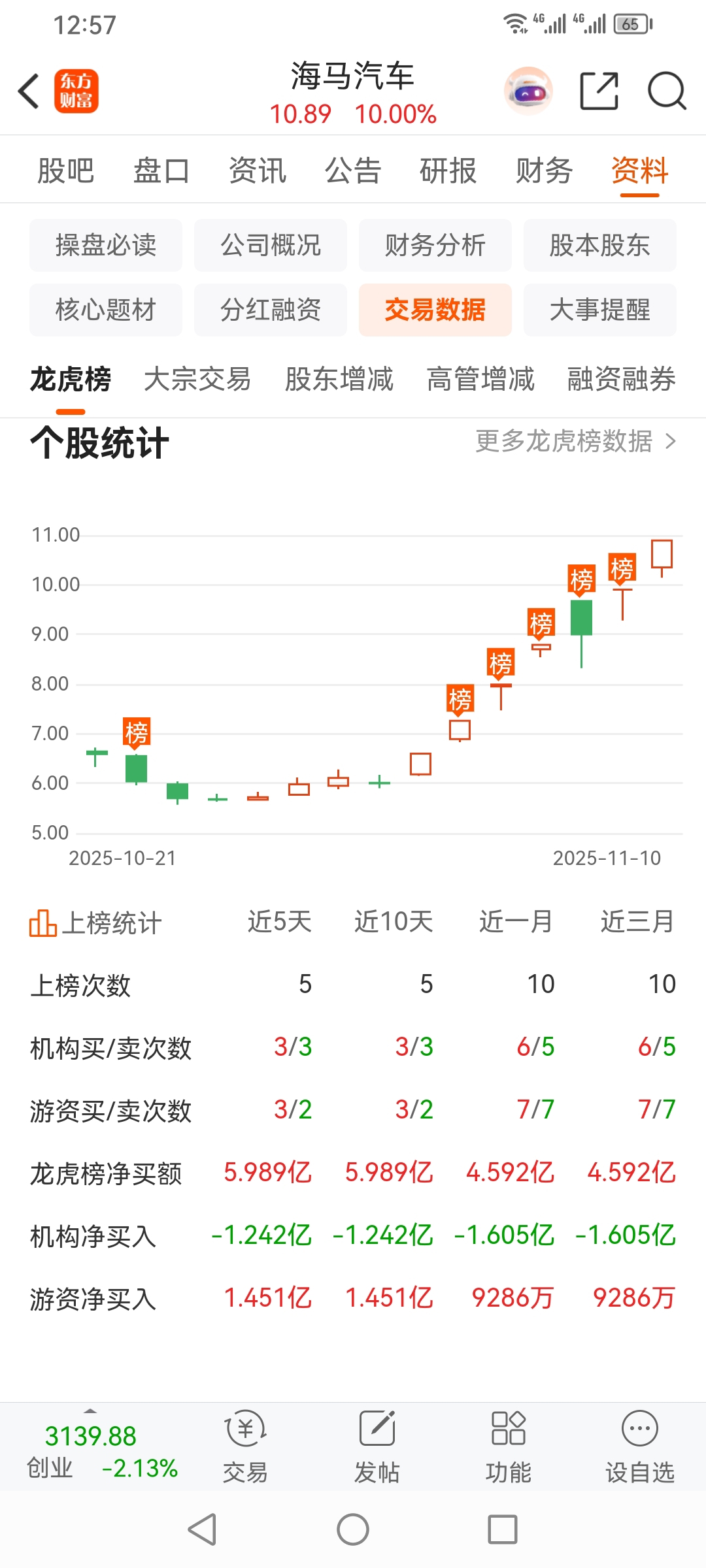 方军打板买进海马汽车