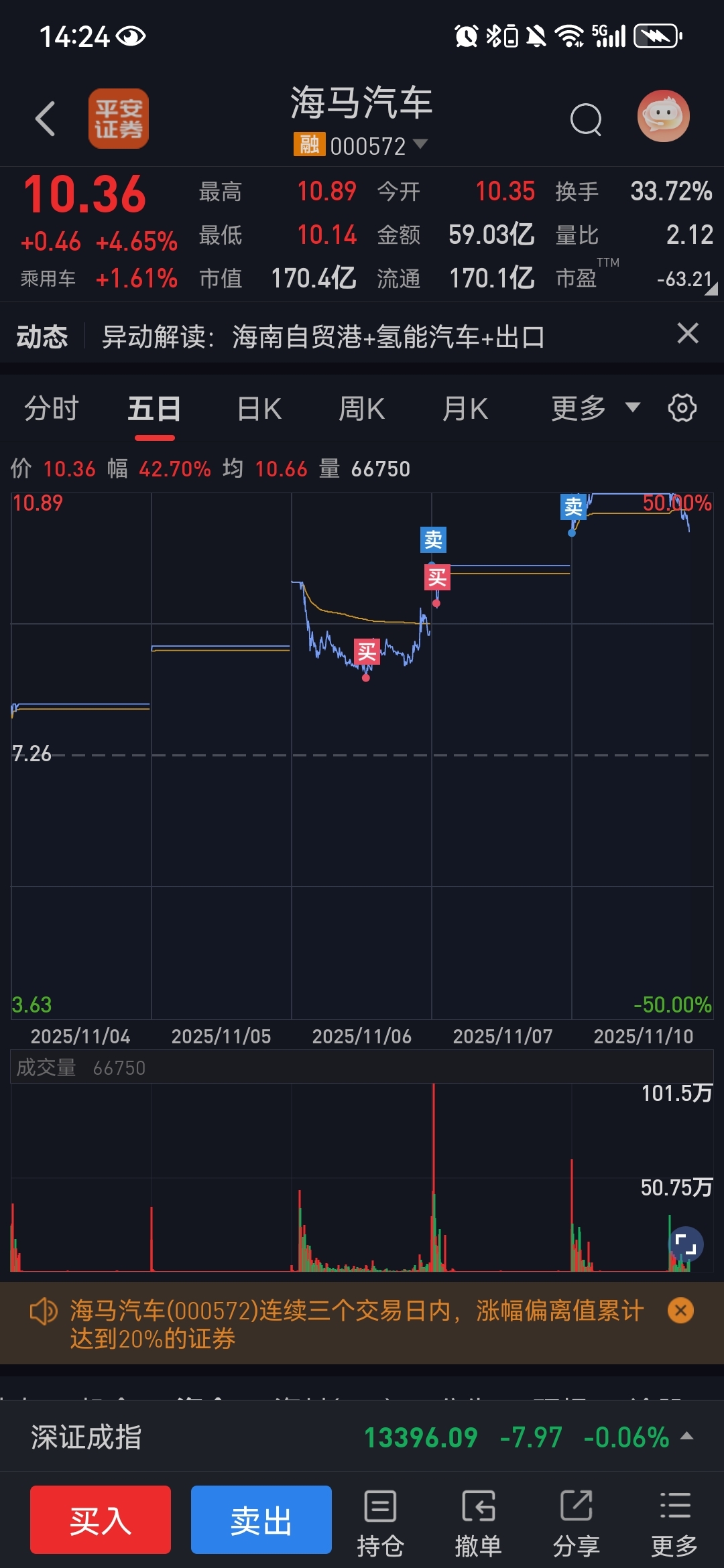 $海马汽车(SZ000572)$ 我挂在9.8买入,就差一哆嗦虽然今天少吃了五个点,喝了一口汤,满足