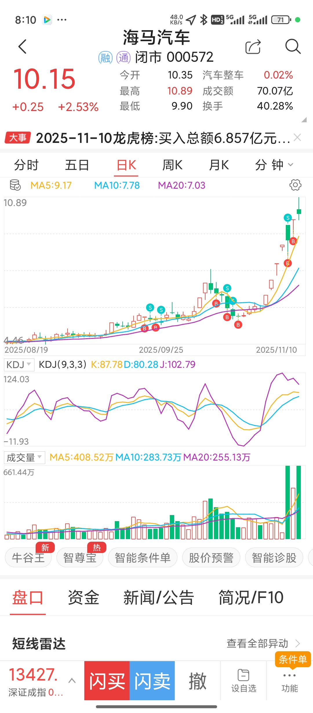 $海马汽车(SZ000572)$ 跟着榜一大哥动向操盘!大佬砸我也砸,大佬封板我锁仓,主打跟随有肉吃!低位挖掘第一板到现在一直拿,年底了。没有那个方向可以持续性……外卖基本拉高第二天被埋