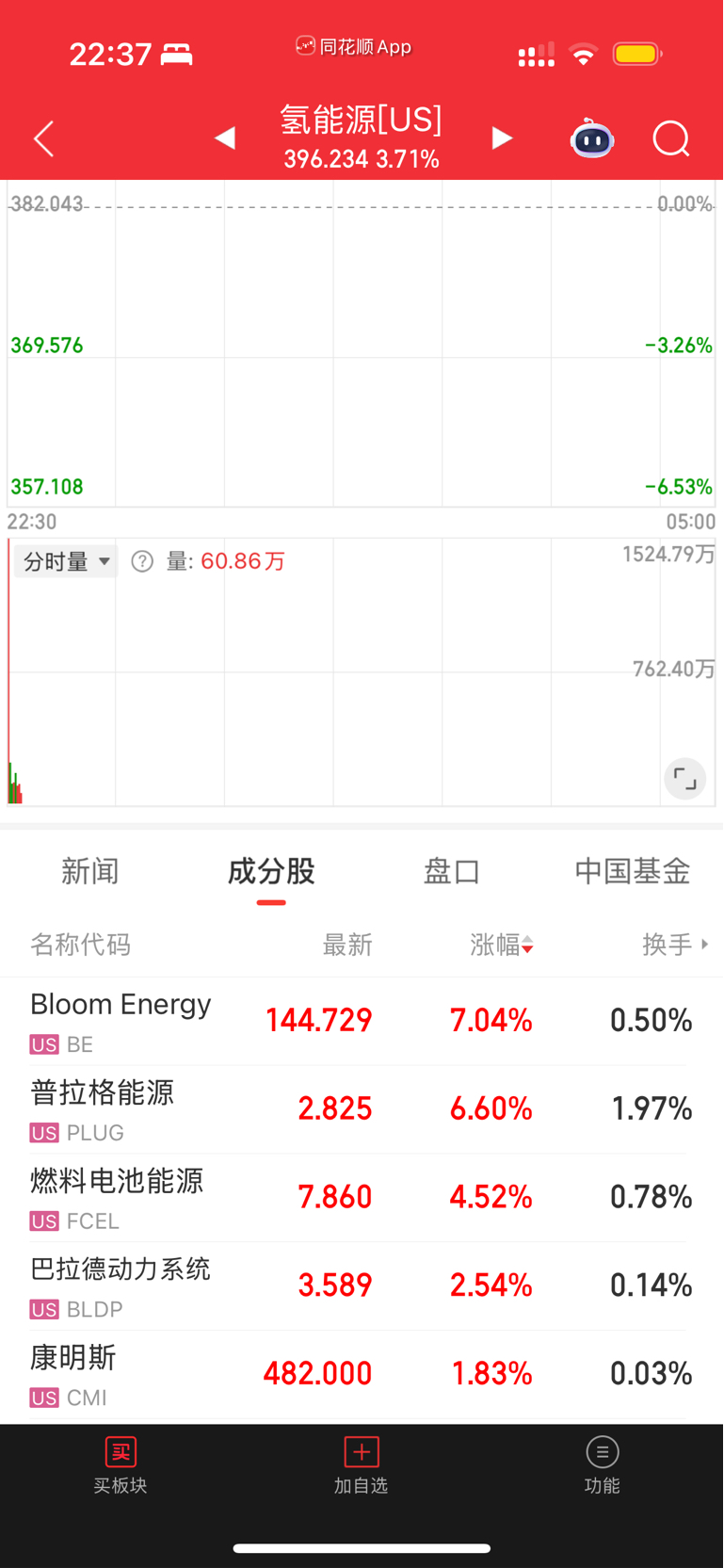 外围氢能源大涨。你是氢能源总龙头明天涨停稳了