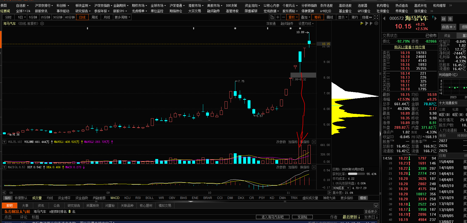 如果按照海马汽车的逻辑,同样是历史天量,而重工还强,后面依然是涨停