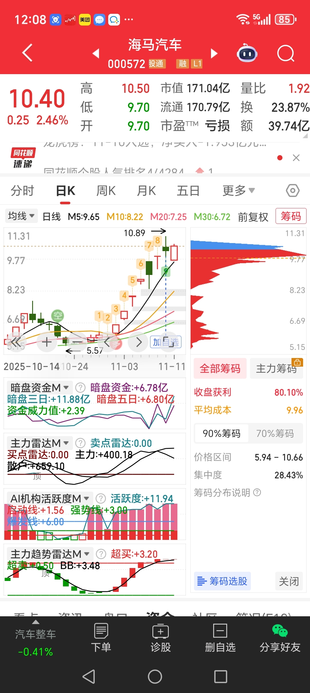 $海马汽车(SZ000572)$ 昨天打板进的,一个点割了。暗盘进六个小目标?合着都是我们散户被洗??