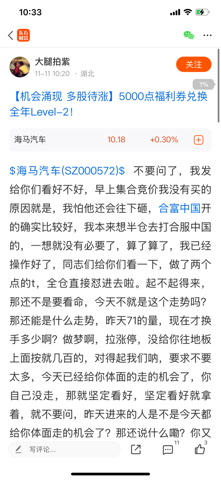 $海马汽车(SZ000572)$ 大腿拍紫出来走两步