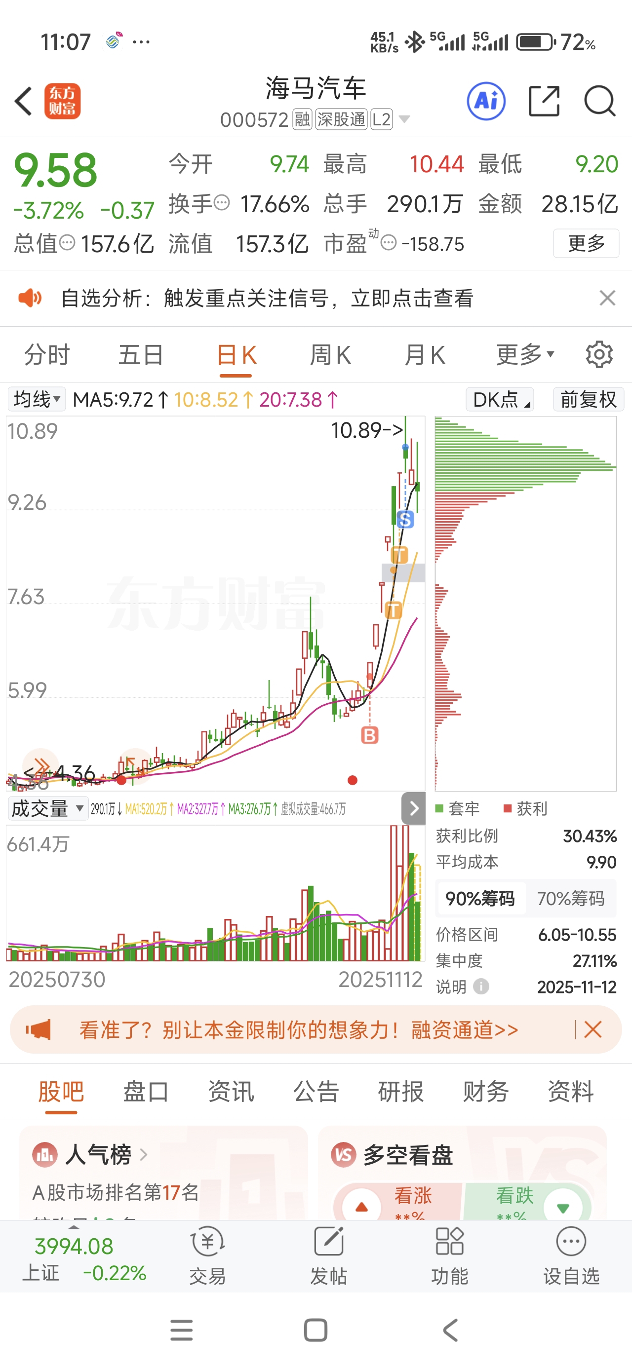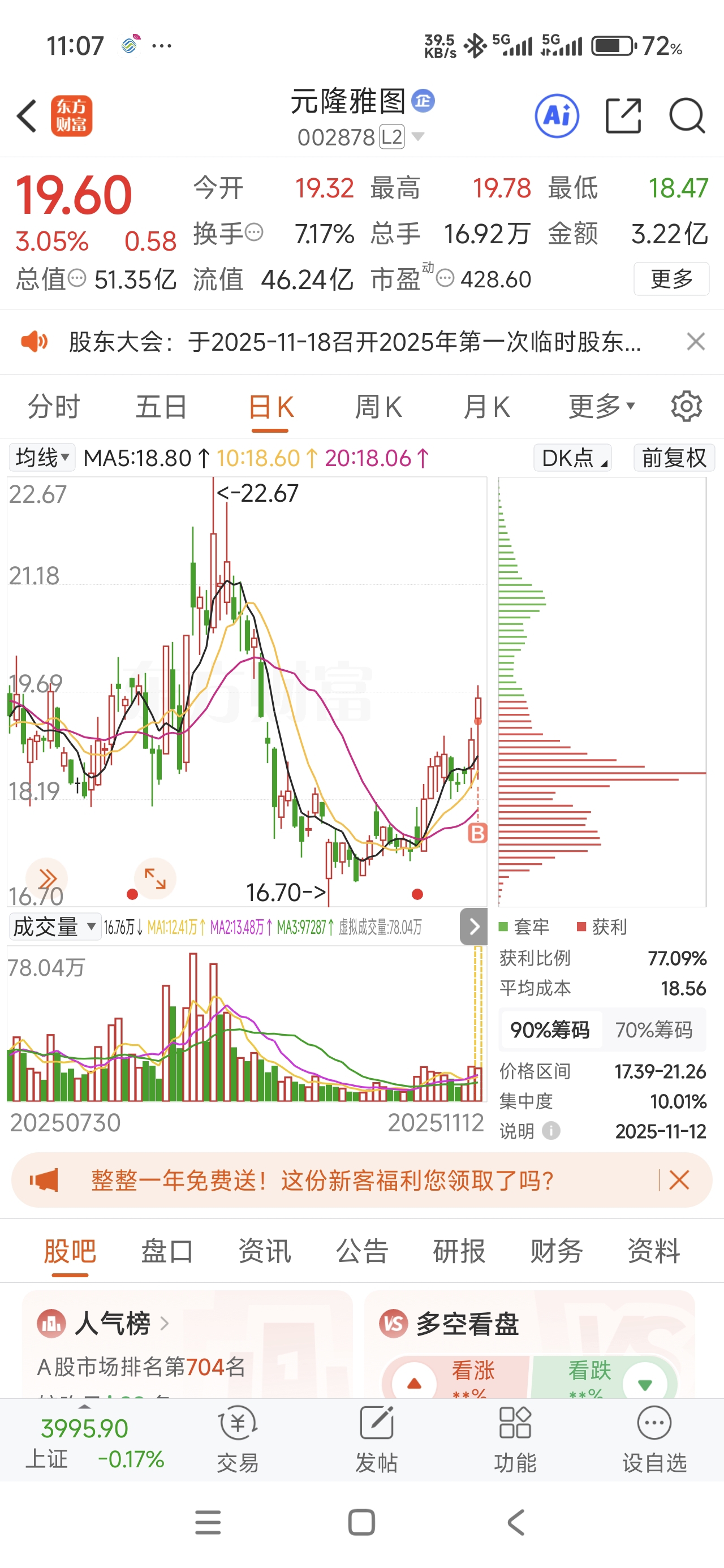 $海马汽车(SZ000572)$ $元隆雅图(SZ002878)$ 自从周一早盘清仓海马汽车后,经过几天无数次心里斗争硬忍住没回去,空仓观望。今天早盘水下买入元隆雅图,理由:粤港澳全运会的吉祥物“大湾鸡”貌似这两天在抖音很火,刚好元隆雅图又是全运会的官方吉祥物官方合作方,看看能否重回当年北京冬奥会“冰墩墩”六个涨停板的荣光。有枣没枣先打一杆子,刚好海马汽车这两天要回调,别的也没啥可买的。