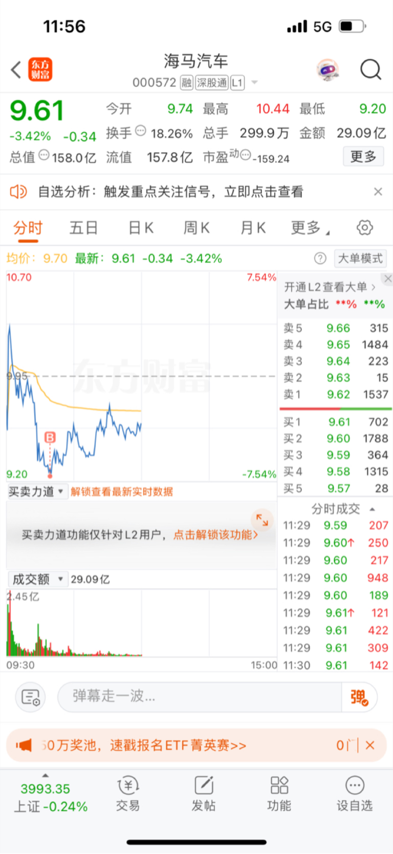 $海马汽车(SZ000572)$ 水下最低买的,重仓,能涨停吗