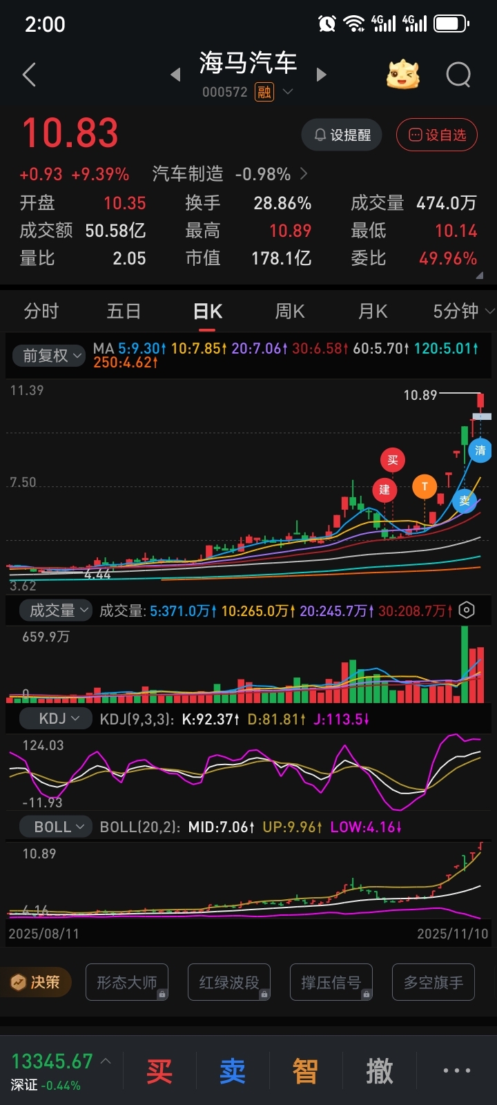 $海马汽车(SZ000572)$ 等…20日线再考虑!