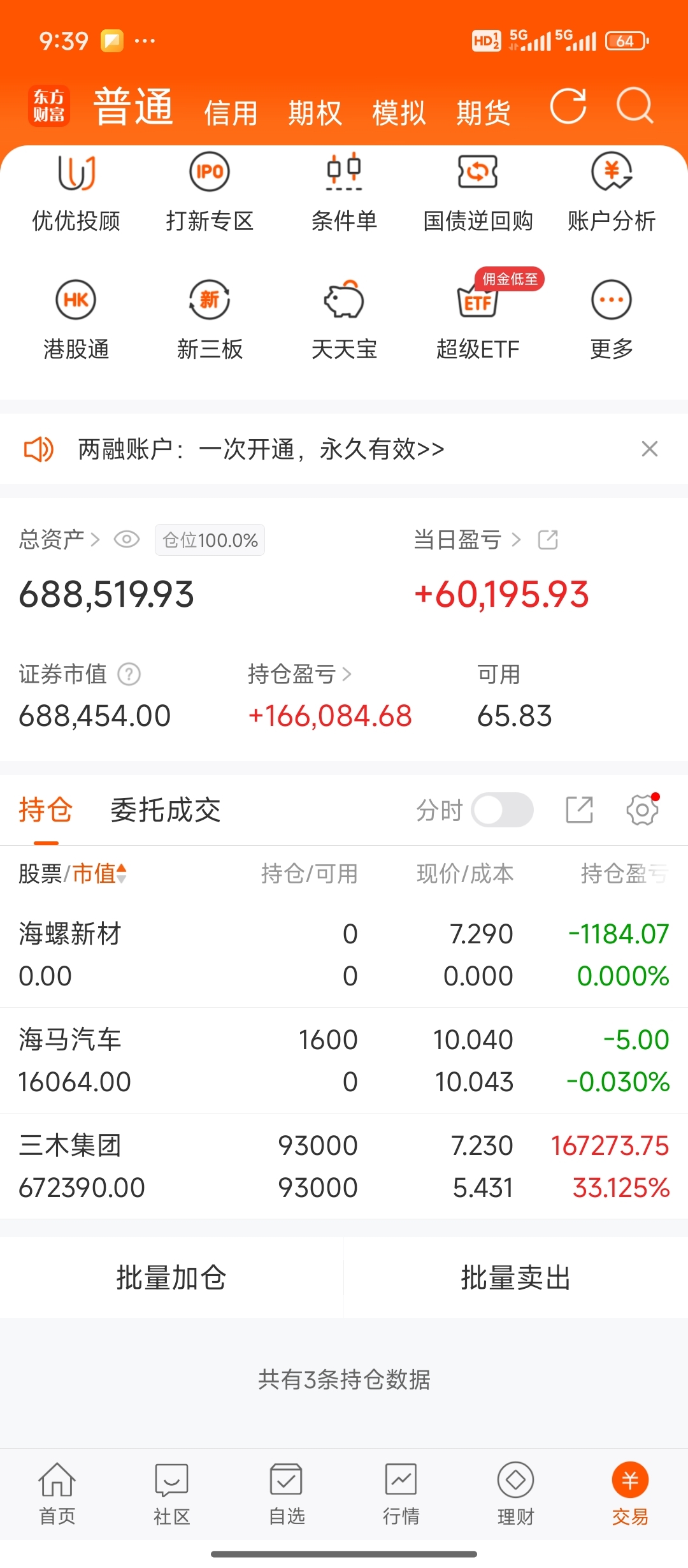 $三木集团(SZ000632)$ $海螺新材(SZ000619)$