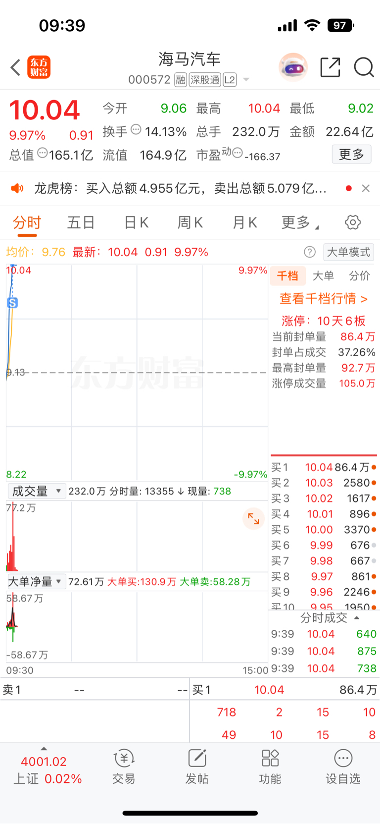 $海马汽车(SZ000572)$ 减点仓位,过去汉马那边咯
