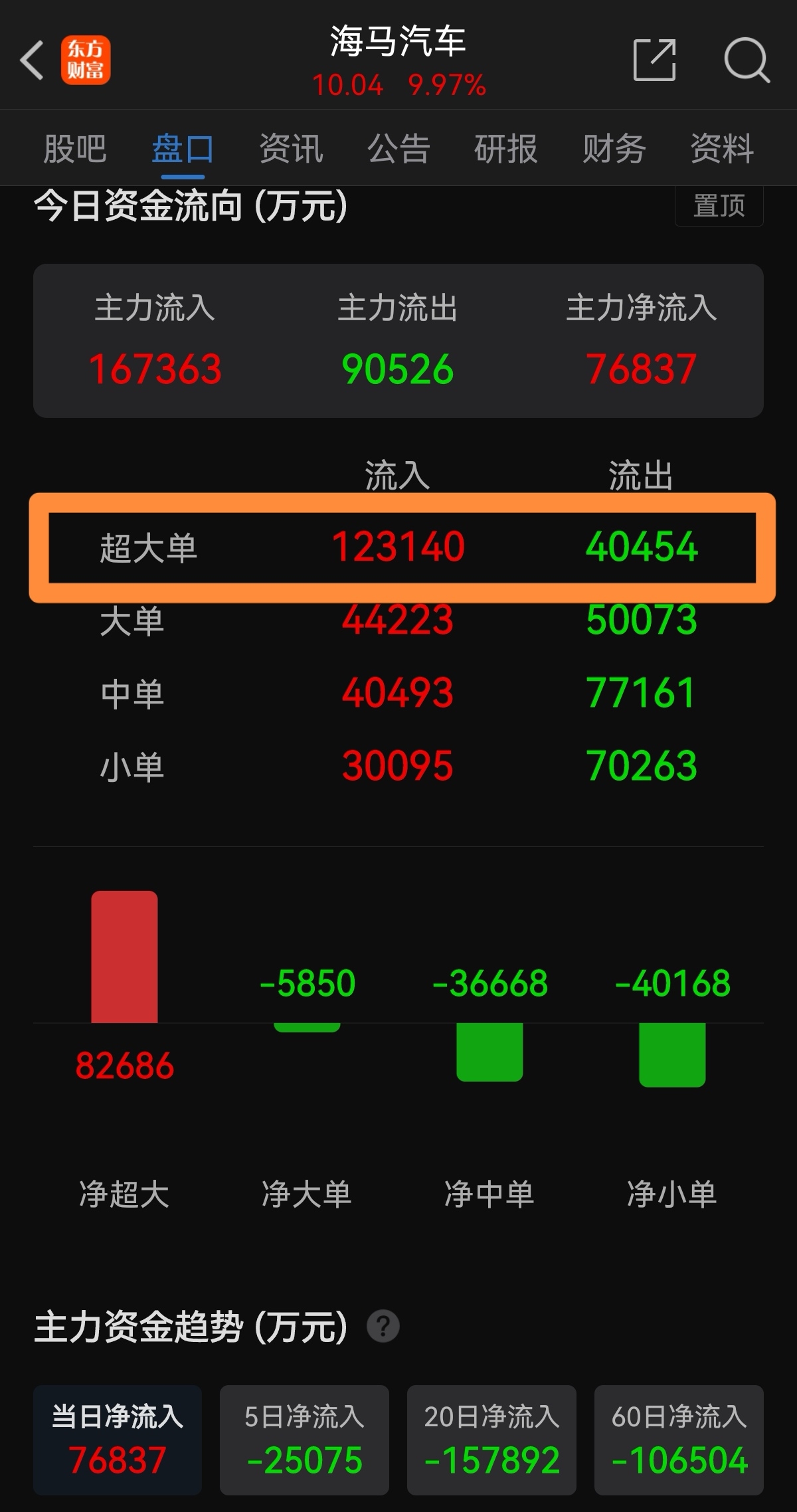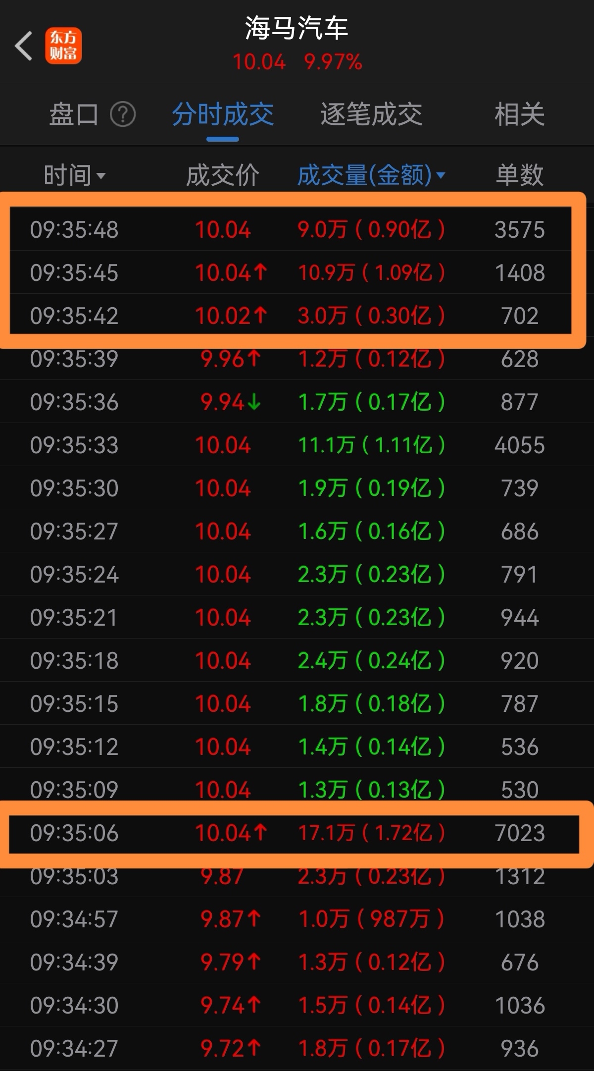 $海马汽车(SZ000572)$ 主力早上抢筹简直疯狂!一眨眼涨停了!三个亿级买单,1.7亿,1.1亿和0.9亿,千万买单就更多了!上午主力狂买12亿,占成交量一半!新能源车+马年+一站氢能源+唯一免税车企+潜在合作伙伴沟通合作(华为或其他大企)!跨年总龙头,拿到年底,对标常山,长城军工,涨幅超乎想象!$赛力斯(SH601127)$ $比亚迪(SZ002594)$