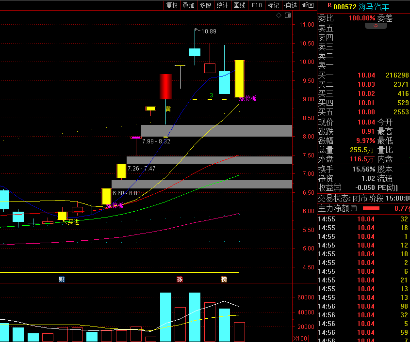 今天海马汽车和万里马出一点加仓的;002255昨天抄底的今天出完