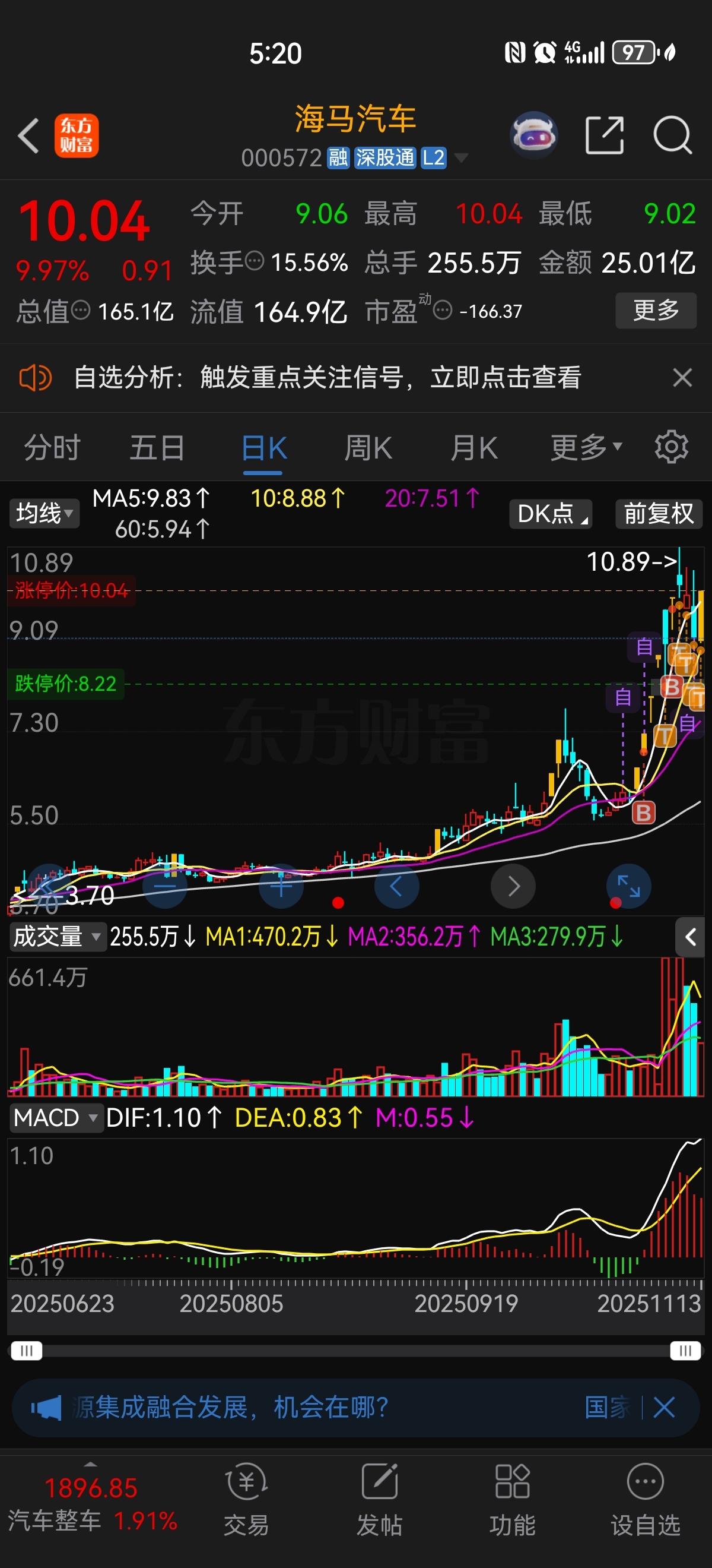 $海马汽车(SZ000572)$ 坚定持有,坐等翻倍!