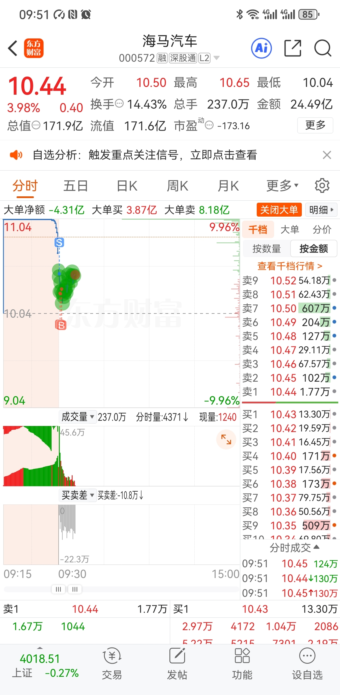 $海马汽车(SZ000572)$ 估计得砸地板吧,昨天这么看就是量化交易,今天全是出的