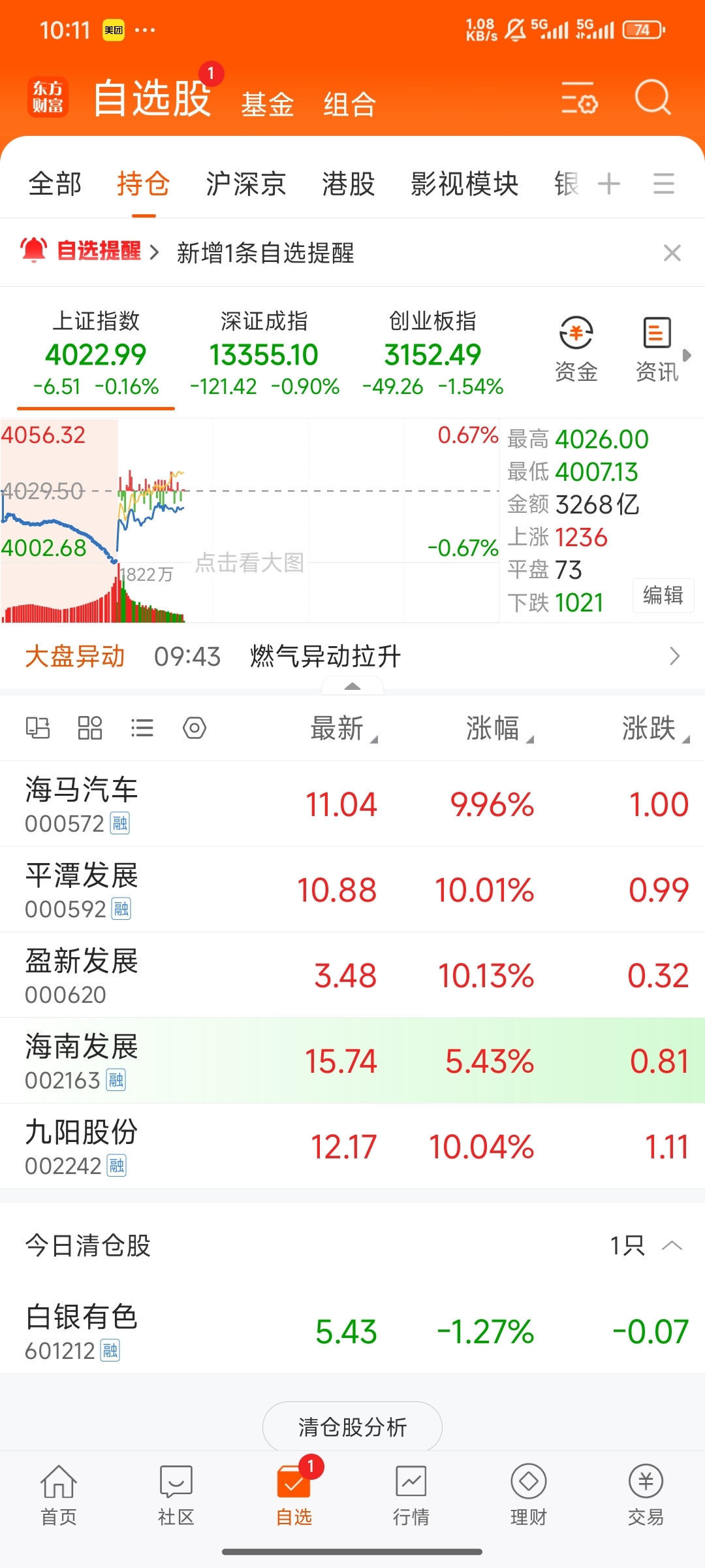 $海马汽车(SZ000572)$ $平潭发展(SZ000592)$ $盈新发展(SZ000620)$ $九阳股份记录一下持仓5个涨停板4个