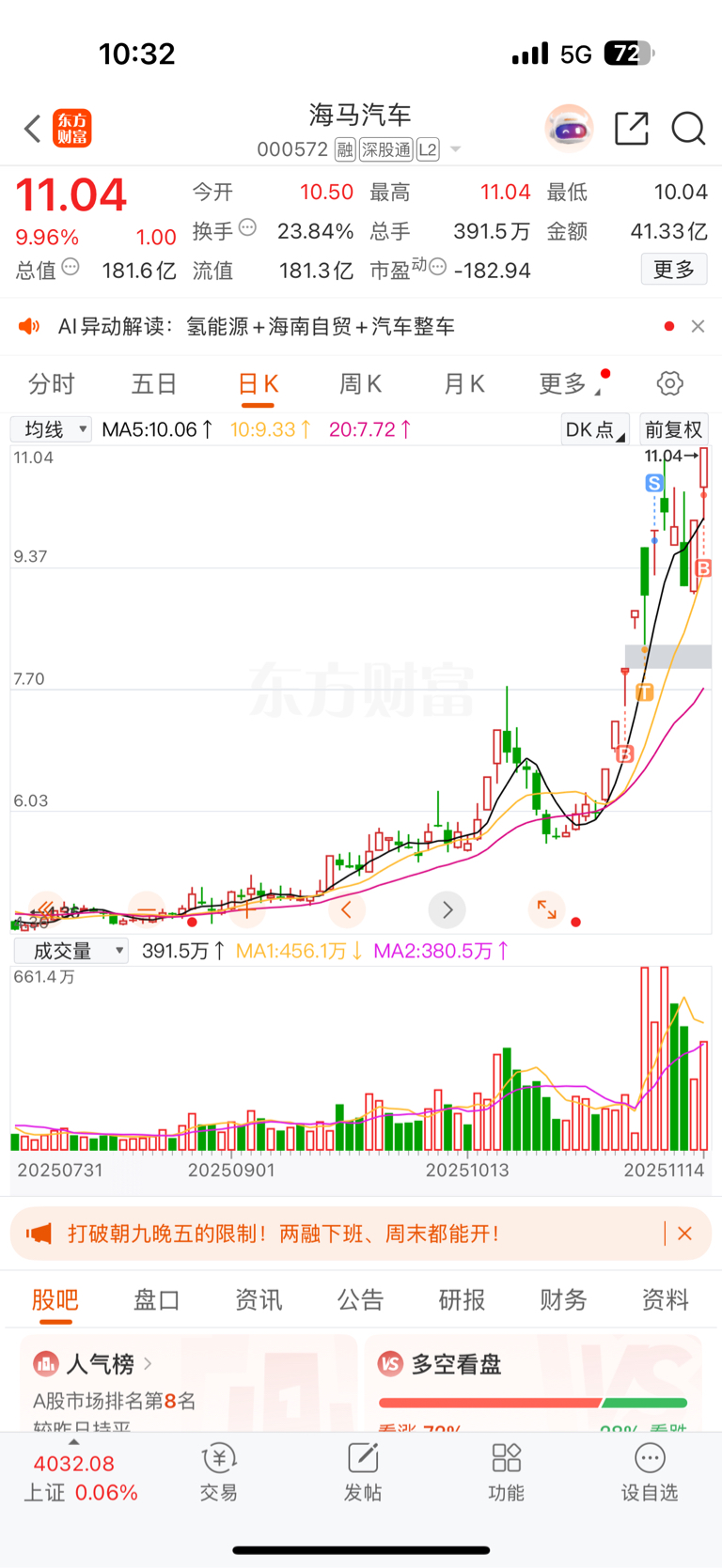 $海马汽车(SZ000572)$ 外面躲了四天,我又回来啦