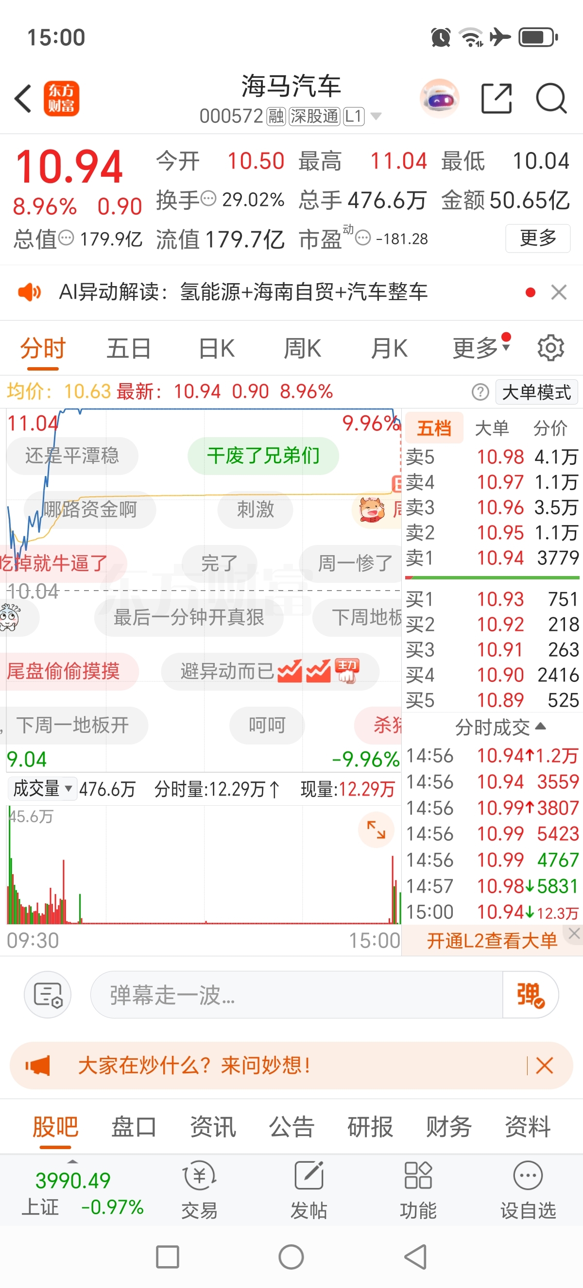 $海马汽车(SZ000572)$ 尾盘炸板,刚好可以加仓。。。可以