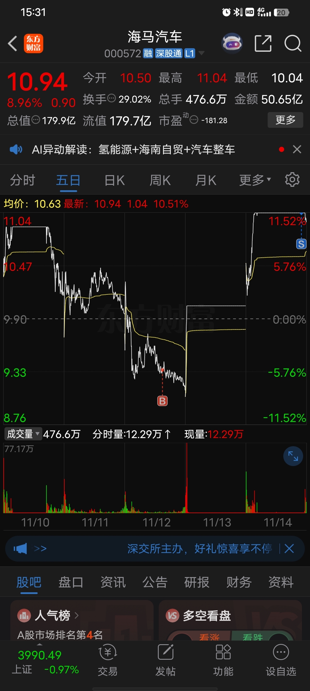 $海马汽车(SZ000572)$ #收盘点评# #炒股日记# 轻松拿捏,祝家人们发财