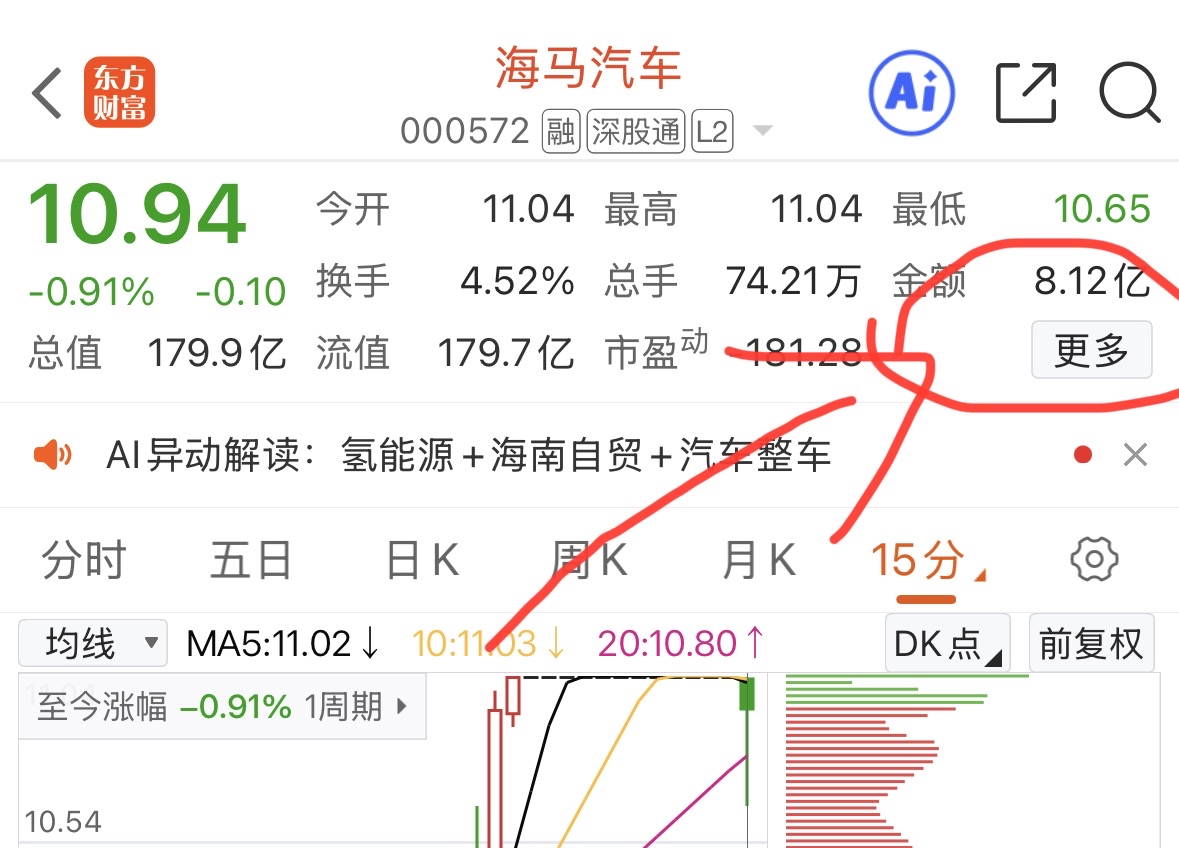 $海马汽车(SZ000572)$ 最后15分钟跑了8个亿??????