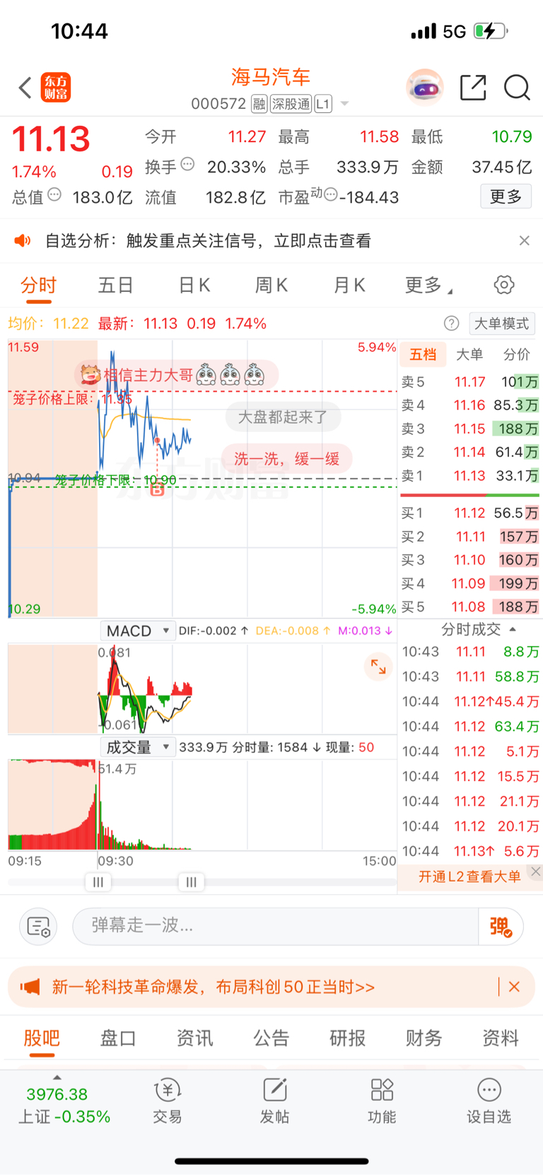$海马汽车(SZ000572)$ 早上不出,反而加仓!哎