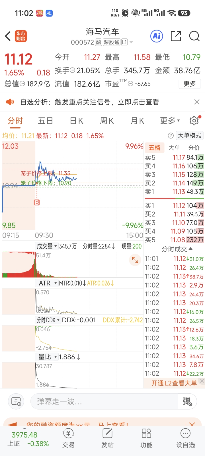$海马汽车(SZ000572)$ 看样子早上是有个要出货,貌似筹码被接了!!有戏!!明天有大戏!!!