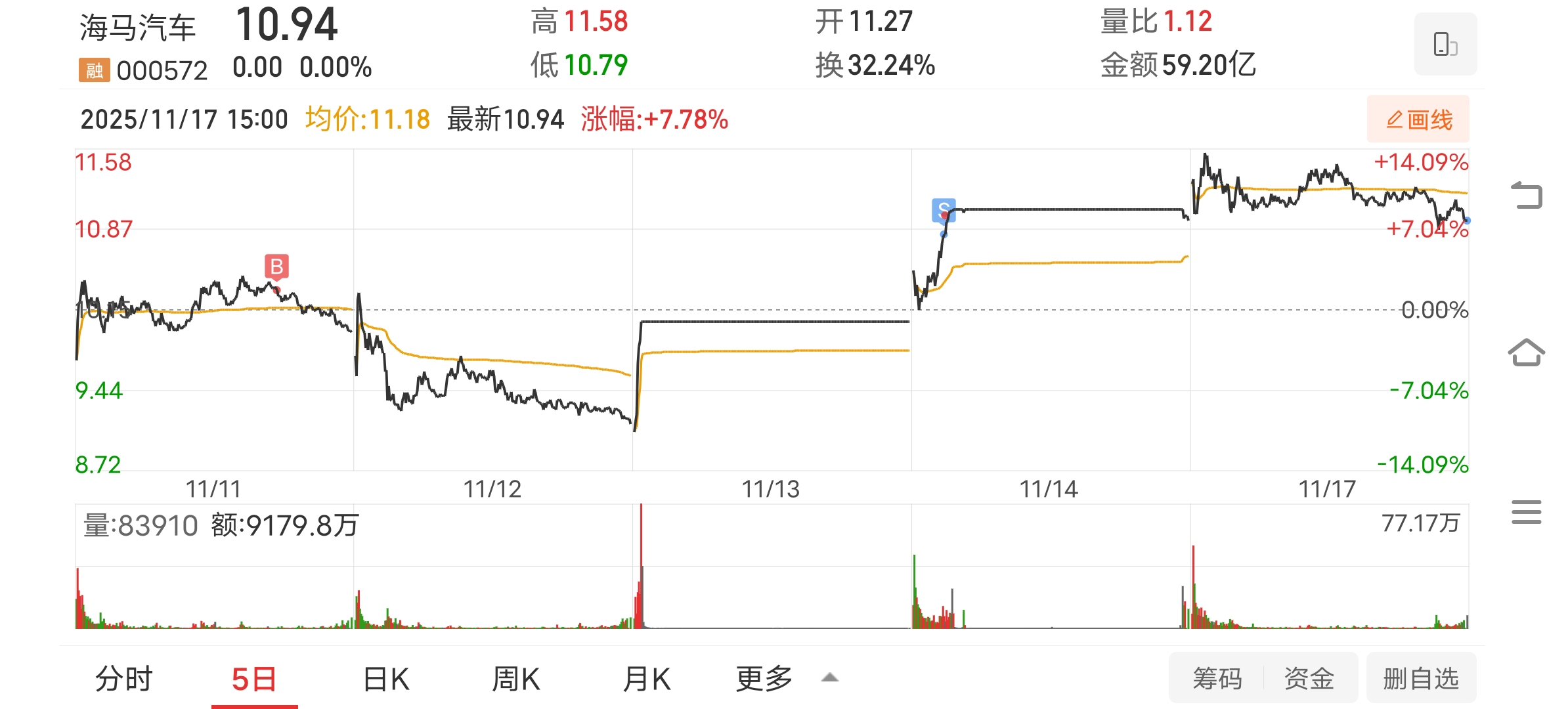 $海马汽车(SZ000572)$ 尾盘卖了,太磨叽太拉胯了,如果这是洗盘我承认我没格局,等你后面走的强势点我再来追高
