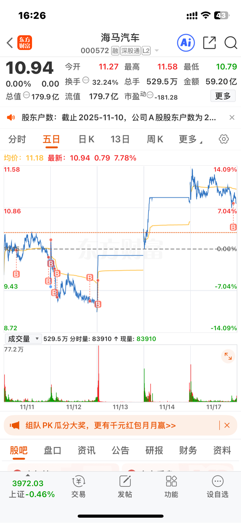 $海马汽车(SZ000572)$ 仓位不多,大概三层,估计未来几天会调整,本来想走的但是还是看好后续应该还有一波玄学,小赌怡下情!