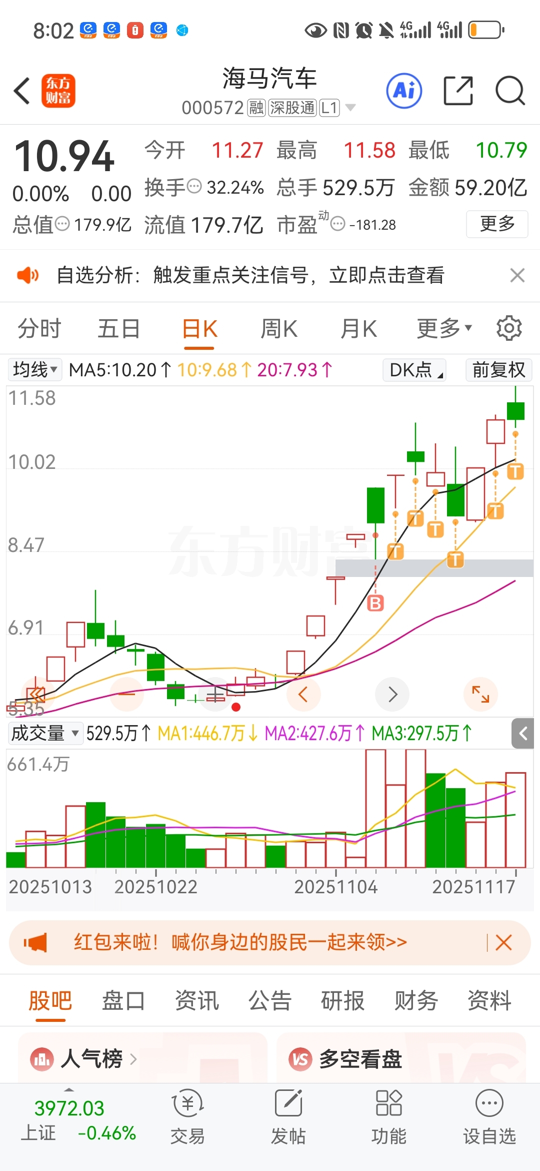 $海马汽车(SZ000572)$ 9元建仓,T到盈利62个点,我佩服我自己