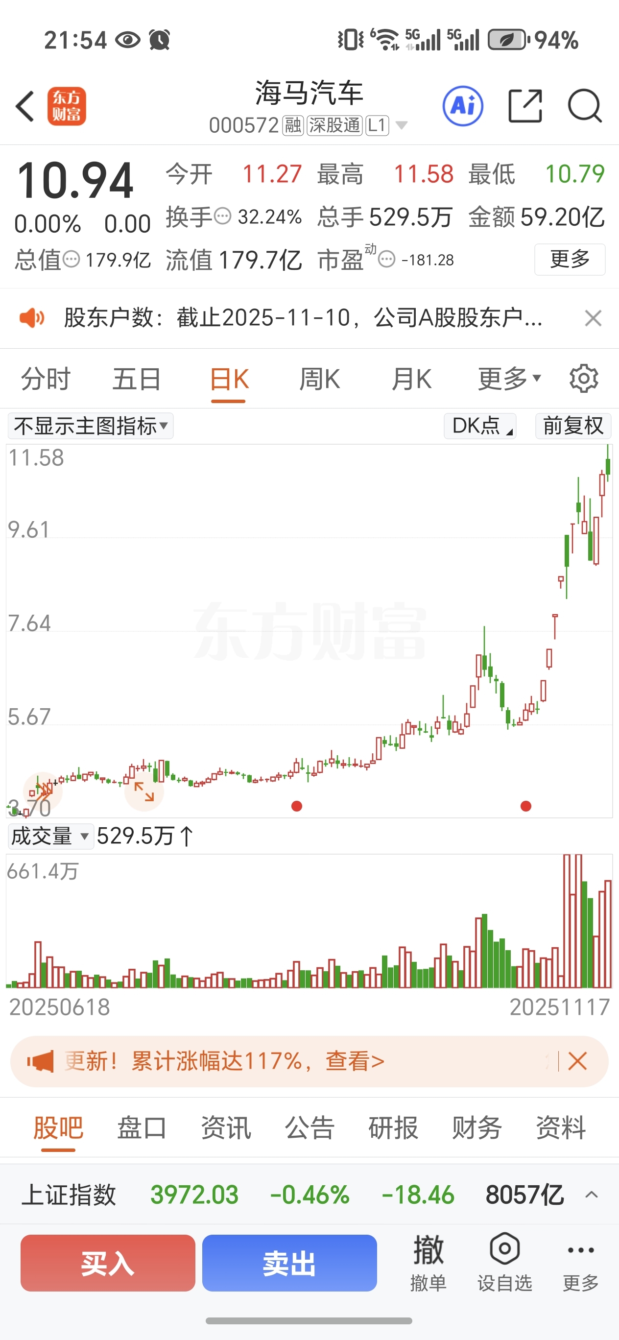 $海马汽车(SZ000572)$ 这玩意明天只能高开上板或者一字,否则买到都是套