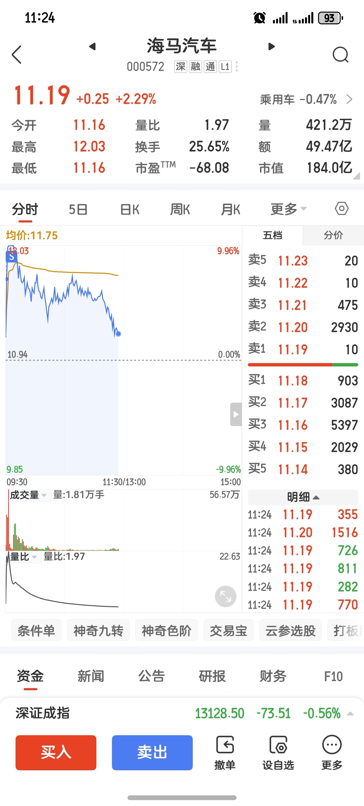 $海马汽车(SZ000572)$ 我开盘两分钟走了,留下的发财。