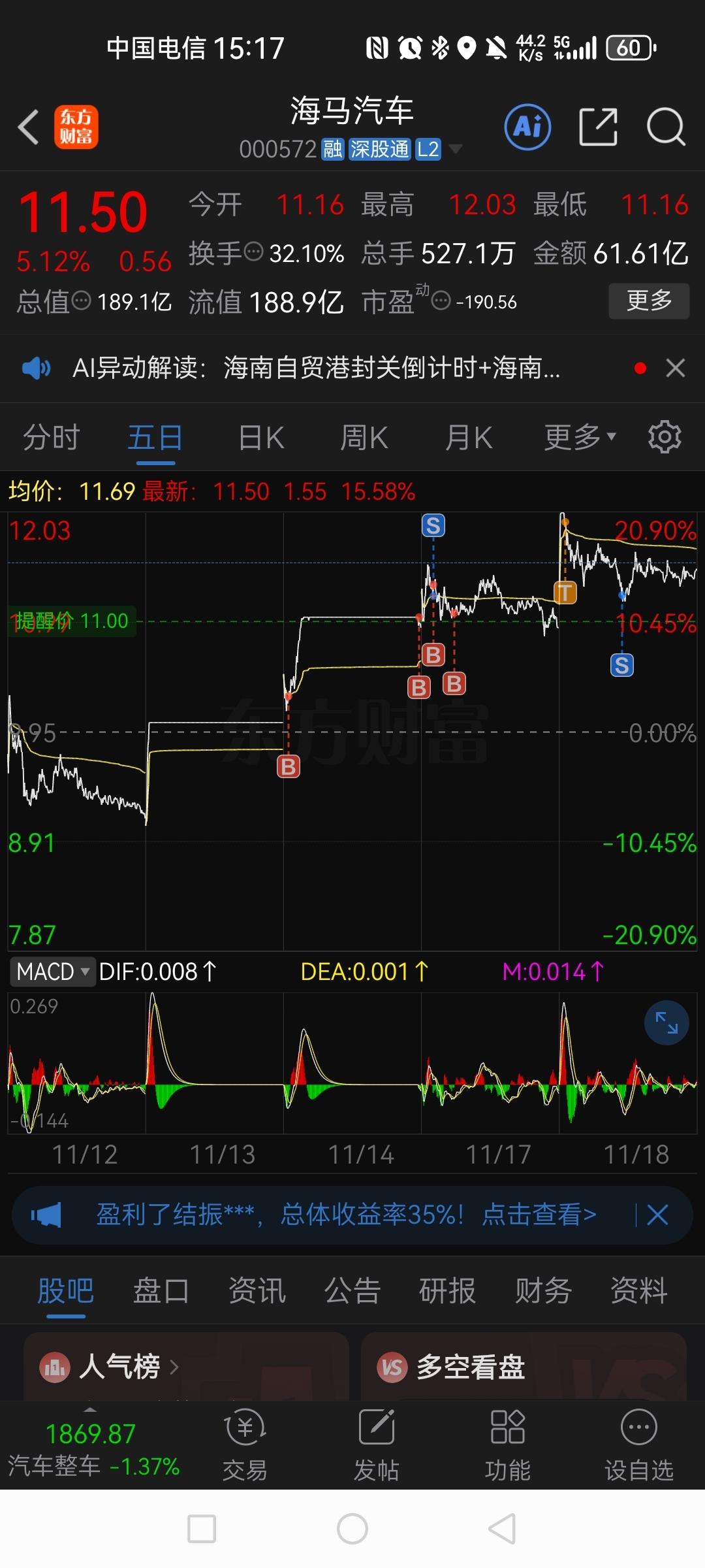 $海马汽车(SZ000572)$ 真的是骚操作,越玩成本越高,本来有盈利的,还导致现在亏损,明天再冲高绝对卖