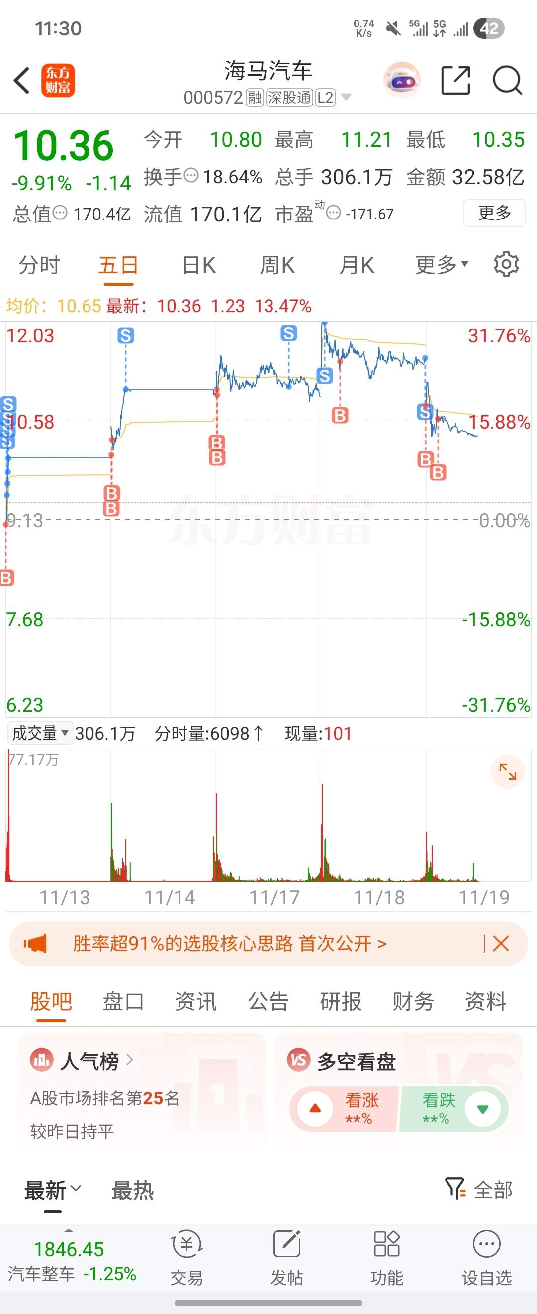 $海马汽车(SZ000572)$ 想过低开,没想到能按到跌停