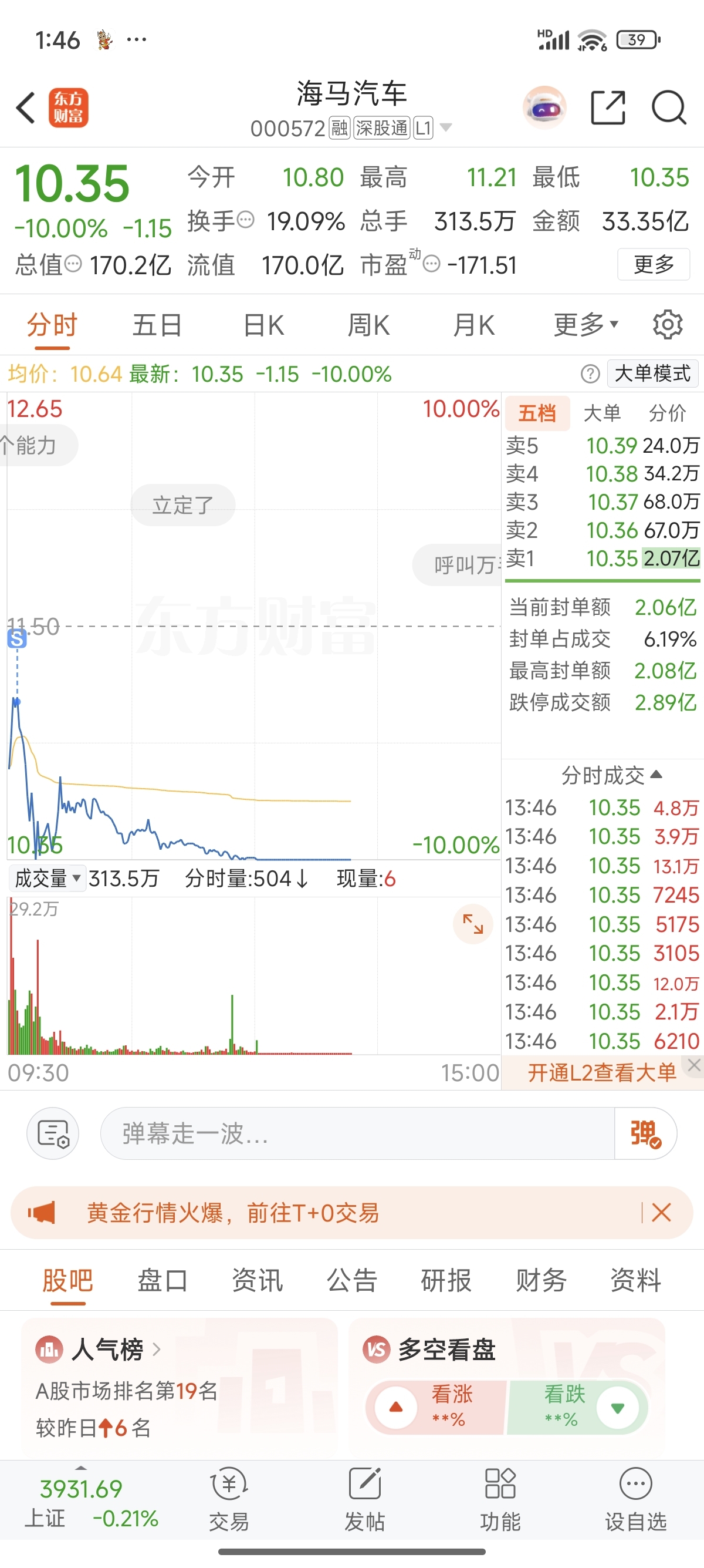 $海马汽车(SZ000572)$ 哥们撑不住了,先走一步,留下的发财!
