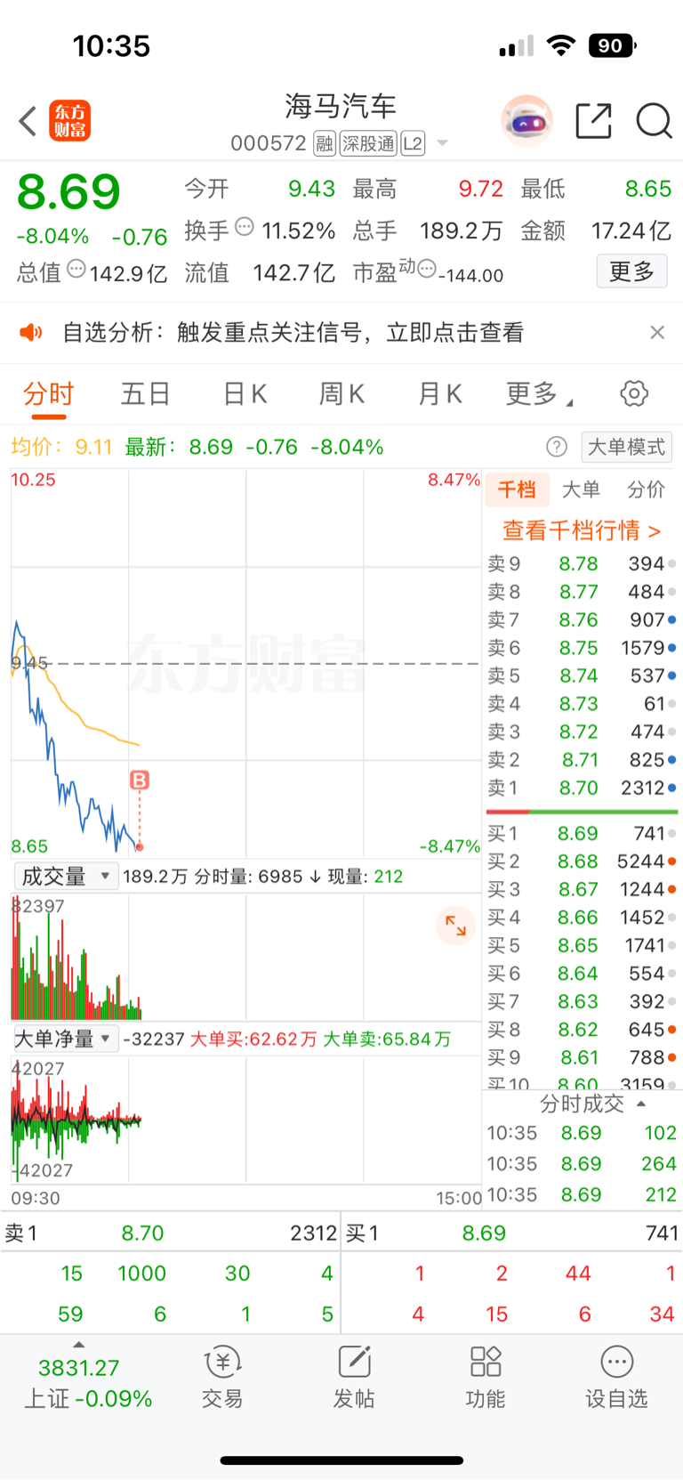 $海马汽车(SZ000572)$ 全仓咯,关灯吃面下班