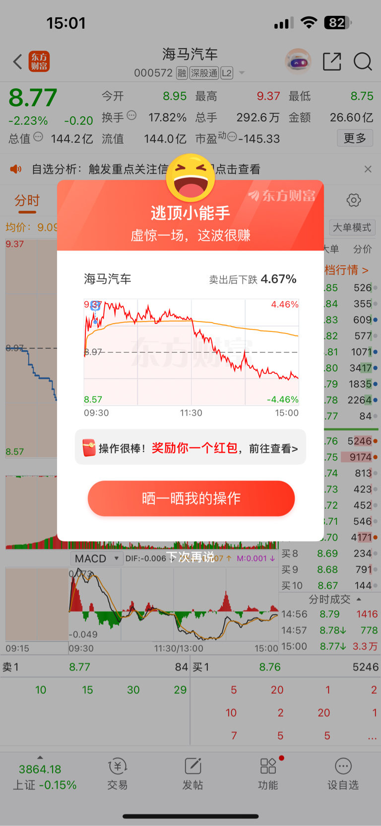$海马汽车(SZ000572)$ 明天还给机会回来吗