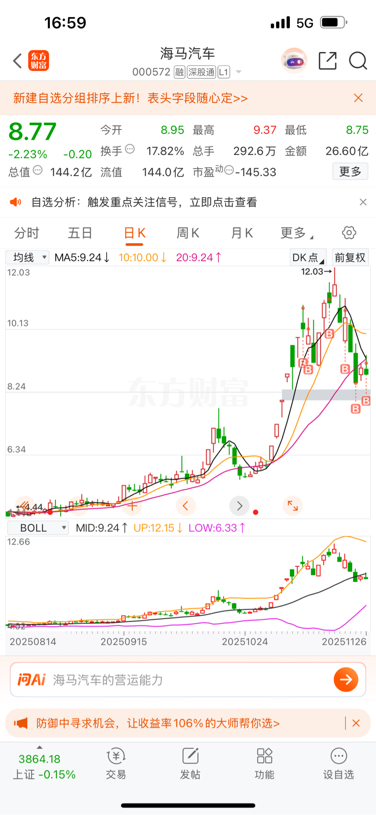 $海马汽车(SZ000572)$ 只能说!对不住各位董事长了!就没一次买对了的!今天又加了!明天是真不妙了!纯明灯!真服了!