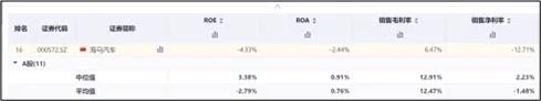 产品结构来看,因新能源转型滞后,目前海马仍以传统燃油车为主。此外,从产品定位来看,海马长期深耕中低端市场。公开信息显示:海马主力车型指导定价为8-15万左右。然而,在行业价格战持续升级的背景下,海马既没有技术优势,又缺乏品牌影响力,只能被动陪跑。横向对比来看,海马的毛利率显著低于行业平均水平,更是不及行业中位数的一半。