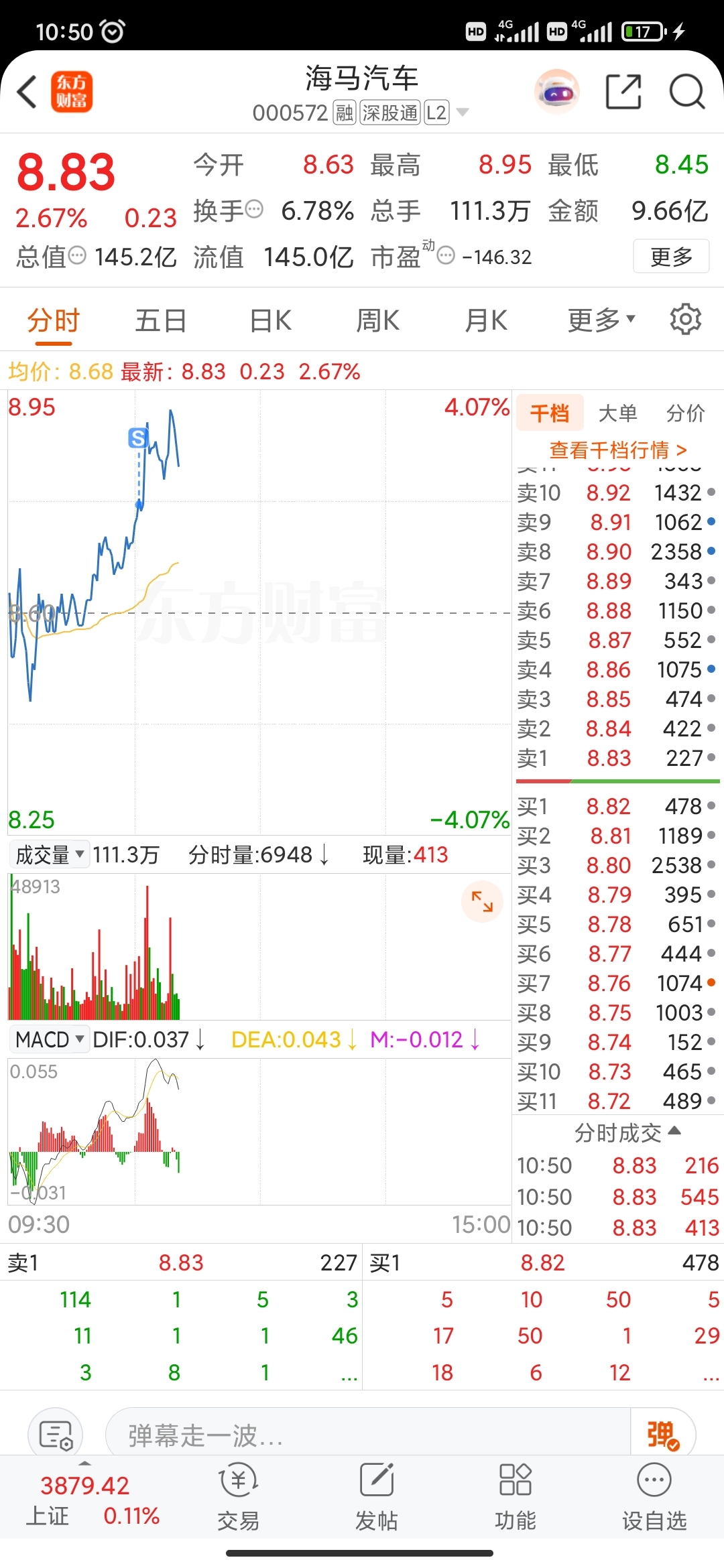 $海马汽车(SZ000572)$ 快跌下来吧,我知道你不行的,下来我好接啊