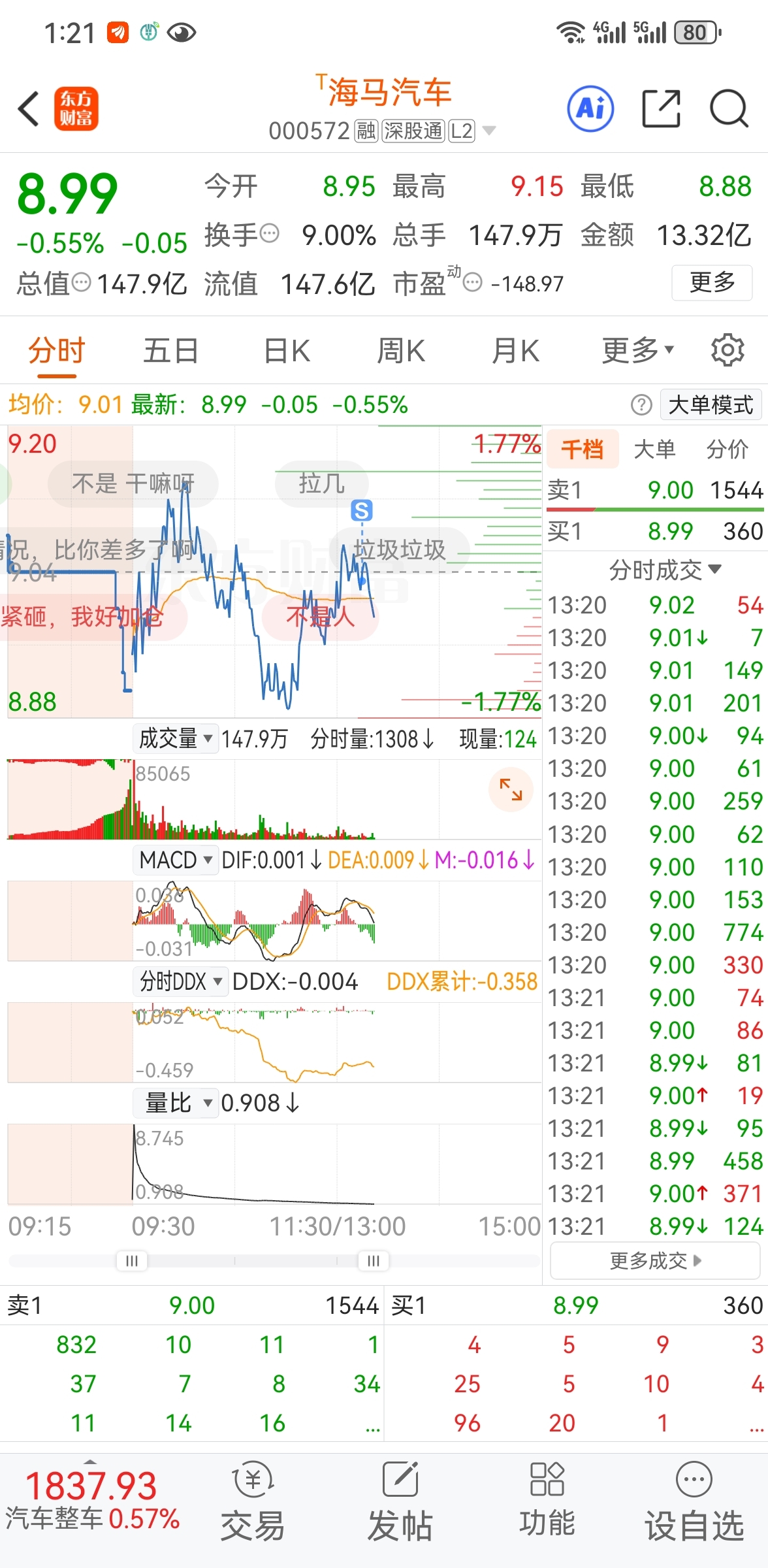 $海马汽车(SZ000572)$ 卖了,先去中水渔业博个反弹,过两天再回来
