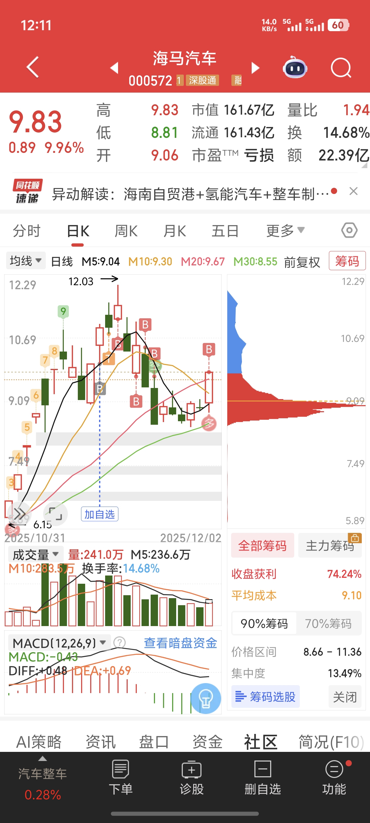 $海马汽车(SZ000572)$ 小散不语,只是一味的买