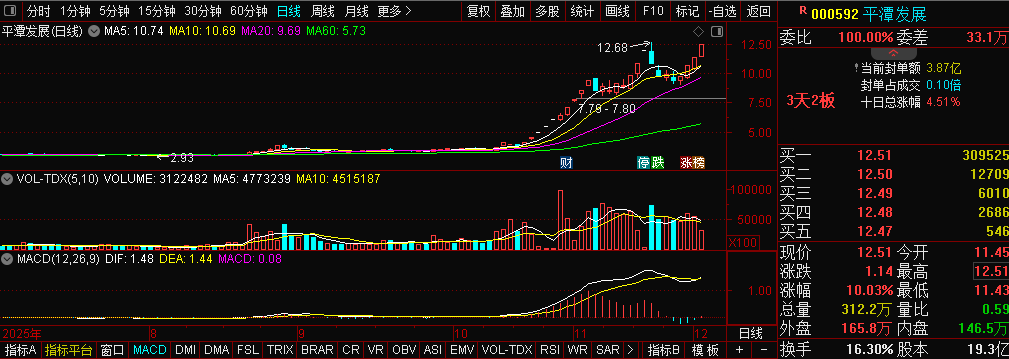 笔者认为在前面明显消息利空的情况下,很快完成修复,说明市场承接力强,情绪持续保持高位,短线活跃度拉满,如果不是明显的利空,继续向上走主升浪的概率极高。俗话说强者恒强,目前12元的价格不能说高,所以今天早盘还是可以重点关注。