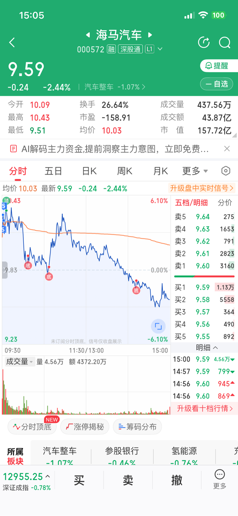 $海马汽车(SZ000572)$ 今天开盘全卖了吃了十五个点