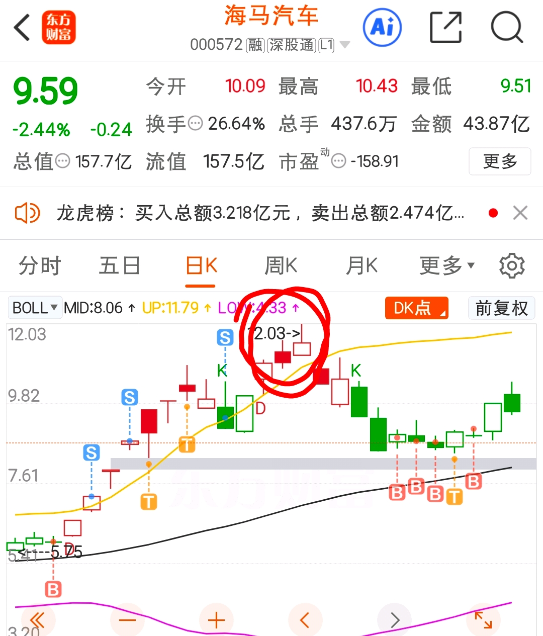 $海马汽车(SZ000572)$ 高点12.03,暗合今天12月03日。距离12.18刚好十五天。而今天放量分歧,应该是到了换方向的关键节点了。
