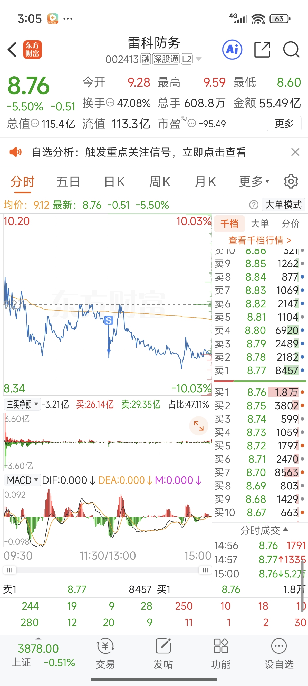今天真的两头挨打,昨天打板进的雷科,中午朱雀三不及预期,恐慌盘出逃我也跟着逃了出