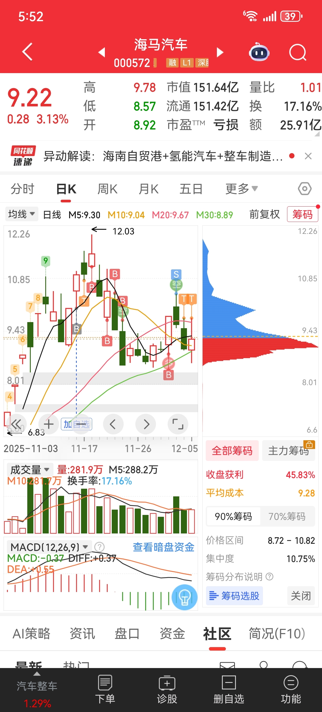 $海马汽车(SZ000572)$ 不容易,本金到9.26了,最多亏4w,加仓做t现在还亏1k